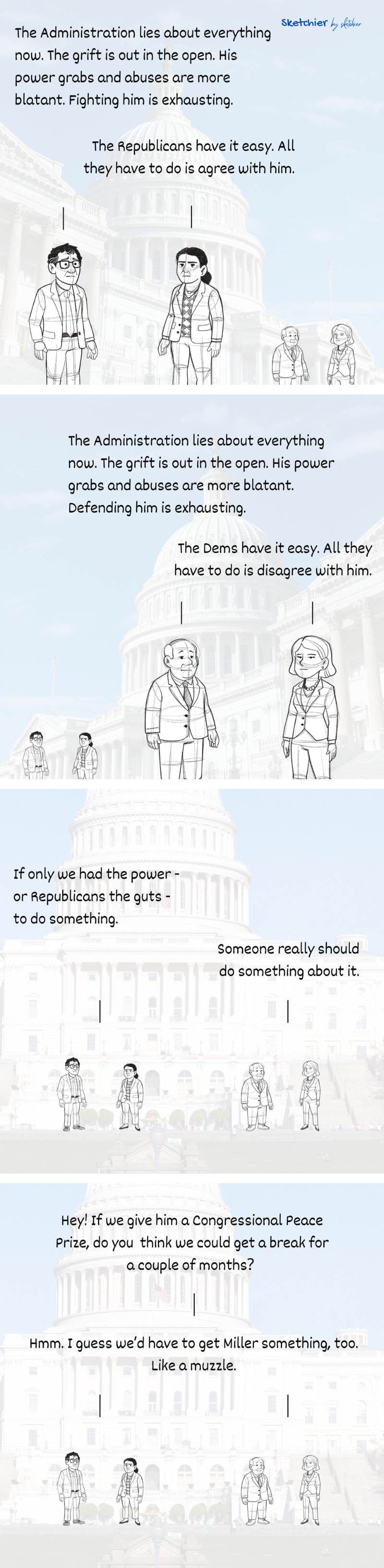 The Administration has launched a flood of lies, crimes, inanity, danger, and cruelty usually reserved for prestige television series. It’s a nightmarish tsunami of manufactured crisis, stupid decisions, and desperate distractions all aimed at creating an authoritarian regime of kleptocrats and pedophile protectors. It is, in a word, exhausting.